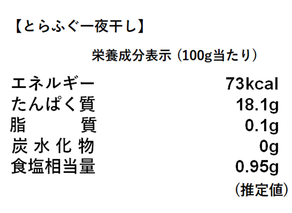 【とらふぐ一夜干し】:標準和名 とらふぐ、食塩
