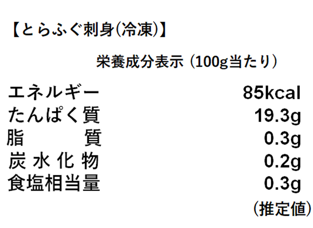 【とらふぐ刺身(冷凍)】:標準和名 とらふぐ