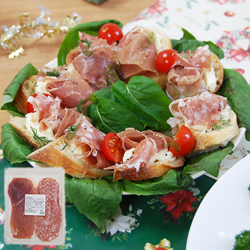 しっとり優しい塩味の生ハムと香り高いサラミの組み合わせはワインとの相性も抜群。