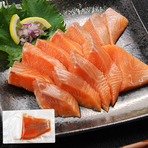 鮮度が持たれた状態で加工し、さらに真空パックされた後急速凍結していますのでお刺身用としてサーモン本来の美味しさを味わえます。